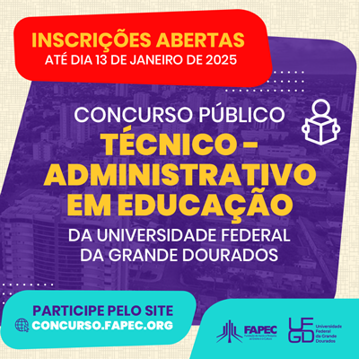 Ler maisO Concurso Público para Técnicos Administrativos em Educação (CPTA) da Universidade Federal da Grande Dourados (UFGD) aplicará as provas objetivas para todos os cargos neste domingo (02/02). Os portões serão fechados às 8h, e as provas ocorrerão em diversos blocos da Unidade 2 da UFGD e também da UEMS, ambas localizadas na Cidade Universitária (Rodovia […]