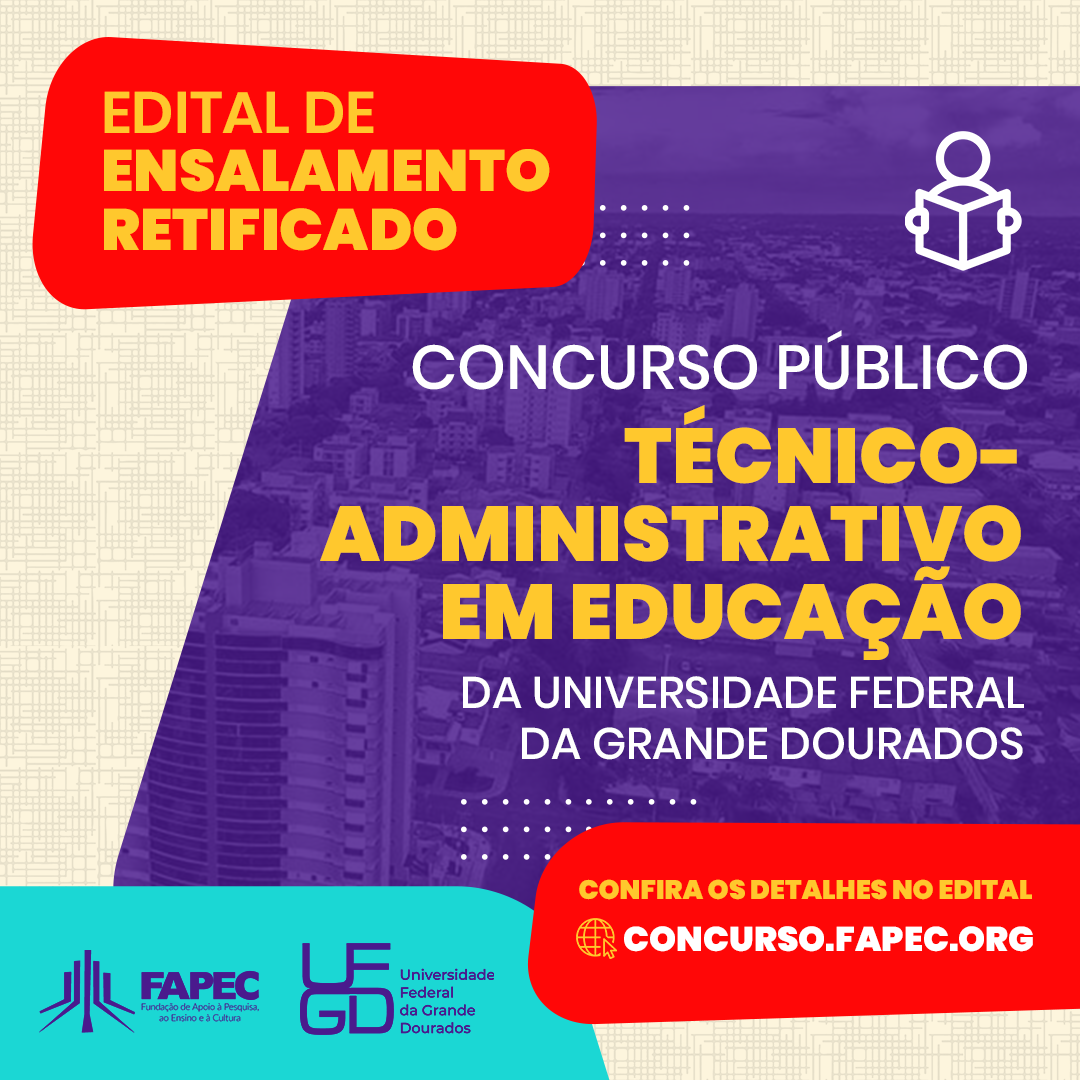 Ler maisA banca da Fundação de Apoio à Pesquisa, ao Ensino e à Cultura (Fapec), por meio da Comissão de Concurso Público (CCP) da Universidade da Grande Dourados (UFGD), informa que o edital de ensalamento do Concurso Público para provimento de cargos Técnico-Administrativos em Educação foi retificado. A nova publicação deve ser acessada neste link. Em […]