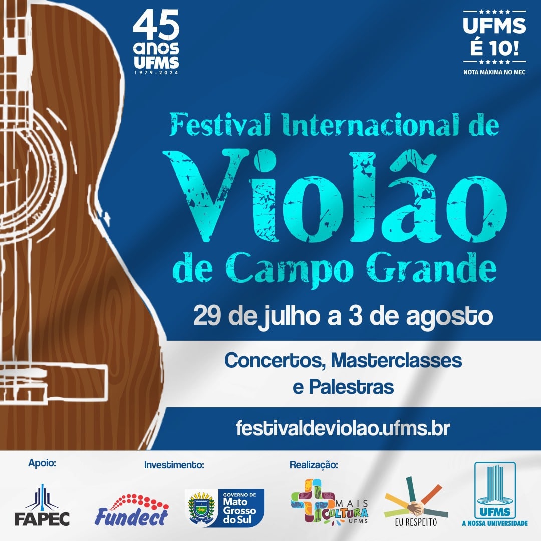 Ler mais*Com informações da Agecom/UFMS | Texto de Vanessa Amim Instrumentistas de Mato Grosso do Sul e de outros estados brasileiros já podem garantir sua vaga na 7ª edição do Festival Internacional de Violão, que será realizada entre 29 de julho e 3 de agosto, na Cidade Universitária. Promovido pela Universidade Federal de Mato Grosso do […]
